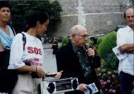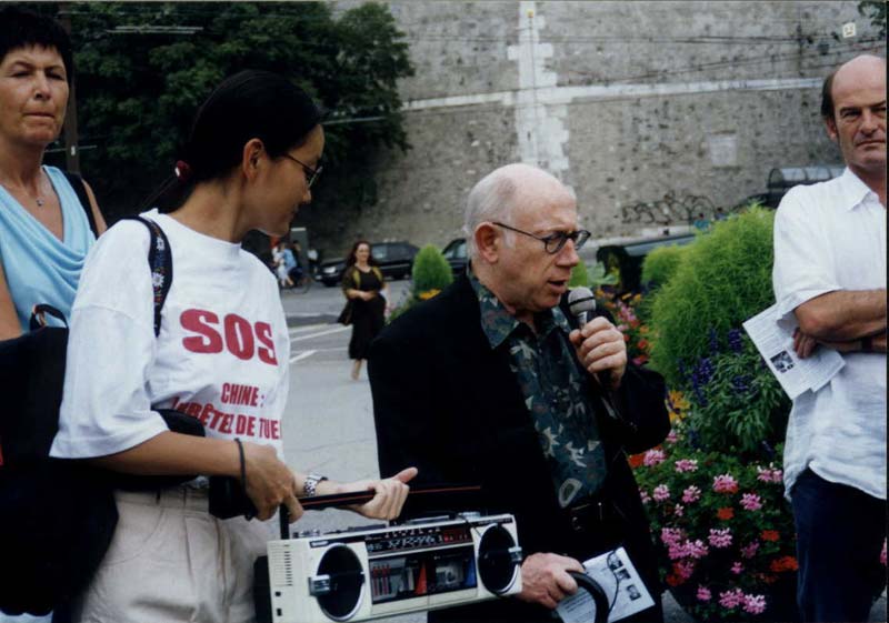 来自社会党的日内瓦议员罗德克先生说:我来这儿的目的是想提醒大家,民主政府的国家包括瑞士,怎么能对象中国这样不讲人权的国家不表态?!如果中国(江泽民)政府希望在国际上保持一定的地位,我想它也应该象别的国家一样,做到最基本的要求:重视人权。他说:我祝贺你们这次的步行活动成功。希望这次活动能提醒人们,人权是不分国籍和种族的,也是每一个国家不能忽略的。
