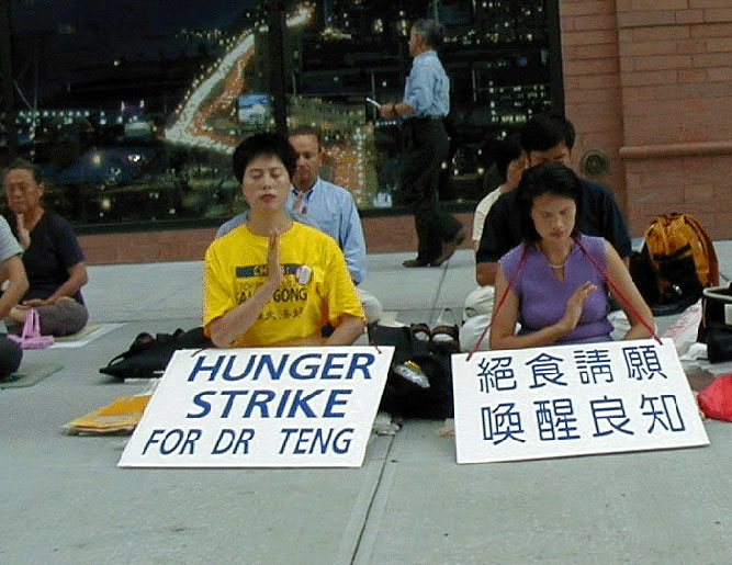 另外,6名纽约地区的法轮功学员为呼吁营救被中国非法判刑3年的美国学员滕春燕,而从8月17日晚7点开始的48小时的绝食已进入了第二天。