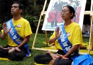 | 集体发正念 | 集体发正念 | 过路行人签名支持援救法轮功学员 |