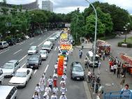 从早上起,就有几个人在一旁大声喧嚷,说着攻击大法的话。好几位学员上前去善意地向他们讲真象,他们却不听劝告。大家集体发正念后,他们明显安静了许多。中午时分,学员们祥和的洪法场面突然被几个不法之徒扰乱。他们肆意攻击大法,无理谩骂学员。当学员为其照相后,竟恼羞成怒,妄图抢走学员的照相机,出手打人。学员们立即报警,警察闻讯赶来。经警察仔细询问后,他们被记录在案。警察警告他们说:如果下次再出现在法轮功活动周围,将被立即逮捕。一善良市民告诉我们,在警察抓住两名不法之徒后,他们的一个同夥立即打电话给中国领事馆。原来他们是领事馆花钱雇来故意捣乱的。在江泽民流氓政权高压下,一个国家的领事馆竟使出如此无耻行径,真是上梁不正下梁歪!但他们万万没有想到,搬起石头砸了自己的脚。江泽民犯罪集团对法轮功的残酷镇压必将以失败告终,所有邪恶之徒将受到历史的审判。
