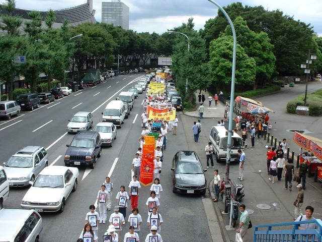 有17位学员在台上发了言、谈了自己修炼的体会和感受。中间休息时放映了”生命之歌”、“郁金香”和”4.25万人上访”三部影片。大家都谈了自己如何去努力揭露邪恶、向世人洪法讲真象。有的克服种种困难半年多以来天天在中国驻日本大使馆前和平静站,抗议江泽民对国内法轮功学员的残酷迫害;有的讲了向接触到的一切人洪法讲真象;有的谈了向大陆来的旅游团和日本国会议员洪法讲真象的经验和体会。一位四岁的小弟子一字一句念了自己的发言稿。小小的年纪就在妈妈的帮助下认字,读 <<转法轮>>,修心性,还运用功能正念除恶,大家都被小弟子的纯真与纯正感动。有一位不识字的学员最初修炼时<<转法轮>>完全读不了,每次炼功点集体学法只能听别人读。由于坚信大法、精进实修,现在他已经能读整本的<<转法轮>>和<<精進要旨>>。还当场为大家流利地朗读了第四讲“失与得”中的一节,大法在他身上出现了奇迹。