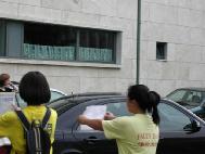 8月20日,当学员们得知德国议员将聚集在国会大厦召开特别会议,学员们又赶紧申请到8月20日,在国会大厦前举办法轮功咨询活动。