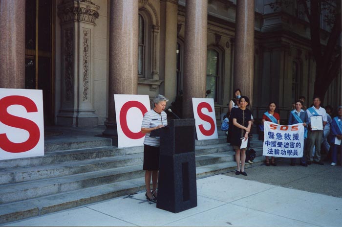 几个星期以前,在美国首都华盛顿举行的游行活动期间,我有幸与这些步行者们和数千其他法轮功修炼者在一起。这个声势浩大但平和的游行使有12位以上的参众两院的议员们及一些政府机构的领导人表明支持全世界范围内的人权。你们的集会清楚地表明法轮功及其在全世界的支持者不会保持沉默,那真是一件激动人心的事情。