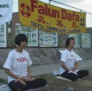 1. 三名加拿大蒙特利尔学员(左起:杨冬冬、李智莉、刘进芝)于8月21日下午开始在渥太华中国大使馆前绝食请愿。