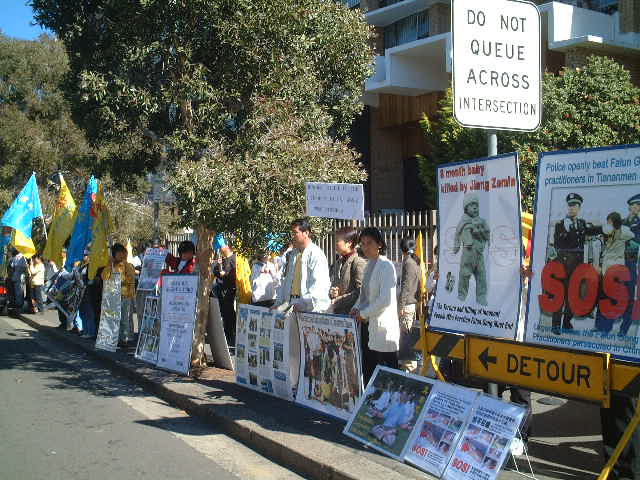 从昨天开始,已有十几位澳洲法轮功学员开始在堪培拉中国大使馆前绝食请愿。今天我们悉尼的部分法轮功修炼者决定在中国驻悉尼领馆前进行265小时昼夜静坐,之所以这样,是因为目前在中国大陆的马三家劳动教养所里,有超过130多名无辜,善良的法轮功修炼者,由于对江泽民政府的残酷迫害忍无可忍,开始了令人心碎的集体绝食。至今,这一绝食行动已超过20多天了。我们心急如焚。他们未经任何法律程序被长期关押并被延期关押至今,唯一的原因,是因为他们喜爱能使人身心健康的好功法--法轮功,是因为他们信仰真、善、忍。 对中国法轮功学员的迫害也是对我们的迫害,因为我们也信真、善、忍,我们也炼法轮功。