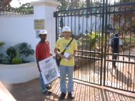 2001年8月25日下午,我们前往南非渡拜中领馆递交请愿信,向南非居民征集签名,并发了正念。我们支持全球法轮功学员的紧急救援大陆同修的绝食行动,并要求江泽民政府立即无条件释放所有被无辜关押的法轮功学员。