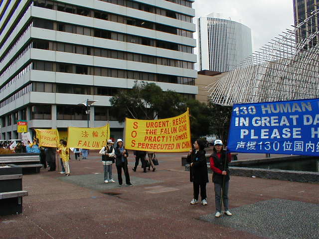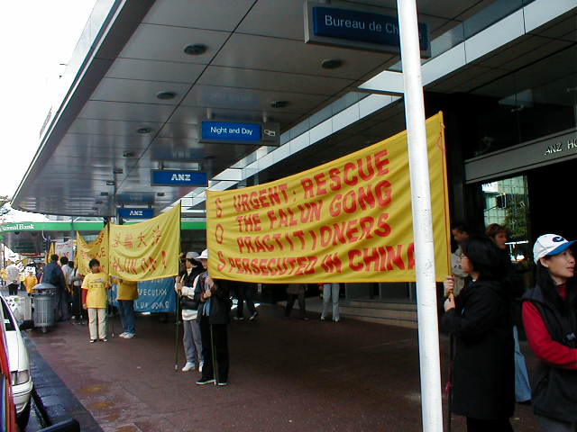 为了紧急救援在马三家劳教所被关押以及其他所有被迫害的法轮功学员,为了法轮功的万古奇冤得以早日平反。今天,2001年 8月 24日 12时我们部分法轮功学员开始在中国领事馆前绝食静坐和平请愿。
