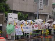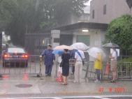 此时无声胜有声。被拒绝的学员继续雨中静立了1个半小时,雨停了。朗朗赤诚之心的法轮功学员为国家说句真话的权利被剥夺了。天地为证!