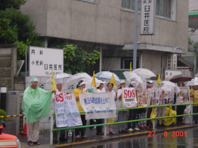 其中最大年龄的是65岁的残留孤儿,饭冢正子女士,绝食请愿56小时,只是因为有事而提前离开现场,身体状况良好。饭冢正子夫妇一起绝食请愿,因为夫妇从法轮功中身体收益很大,丈夫的胃肠等病修炼不久便不翼而飞,自己也从以前的完全靠双拐而能行走,亲身体验了大法的神奇。