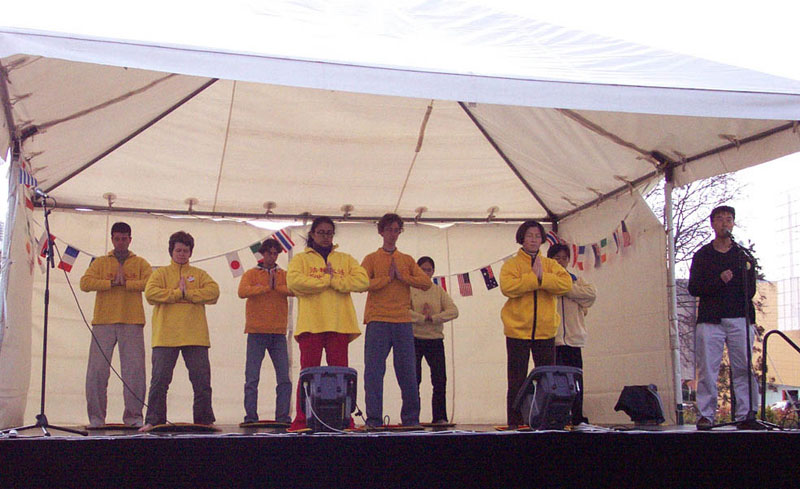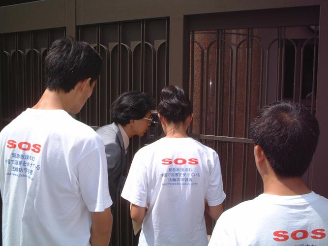 上午,弟子们一起前往领事馆递交绝食声明,由一位日本籍弟子通过门外的麦克风向里面问话,在表明了自己法轮功学员的身份,向对方提出要递交绝食声明后,却遭到了对方的拒绝。我们看到了一个泱泱大国对这样一个平和的团体递交一封声明表现出极大的恐惧。同时,我们也清楚地看到了他们对生命的漠视。