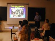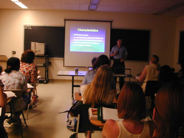 法会中放了大法影片,又加上学员非常好的心得交流,会场中充满了庄严与肃穆。