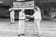 为了让更多的美国人民和海外华人了解在中国大陆发生的对法轮功学员的迫害,8月25日星期六,旧金山湾区五名大法弟子从帝利市出发到旧金山中国领事馆,步行约十英里,沿途散发真相材料,呼吁立即释放滕春燕和在马三家劳教所绝食的130多名学员。