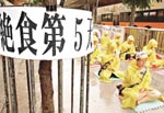 【明慧网2001年8月31日】世界日报8月30日香港讯,法轮功学员在中央驻港联络办公室外的绝食行动进入第五日,有十二名法轮功学员二十九日晨接替已绝食了三天的十名学员,继续绝食抗议行动,他们又会向立法会投诉较早前警方无理拘捕。