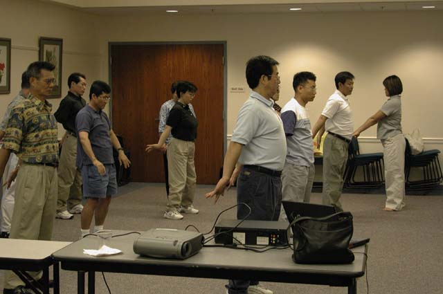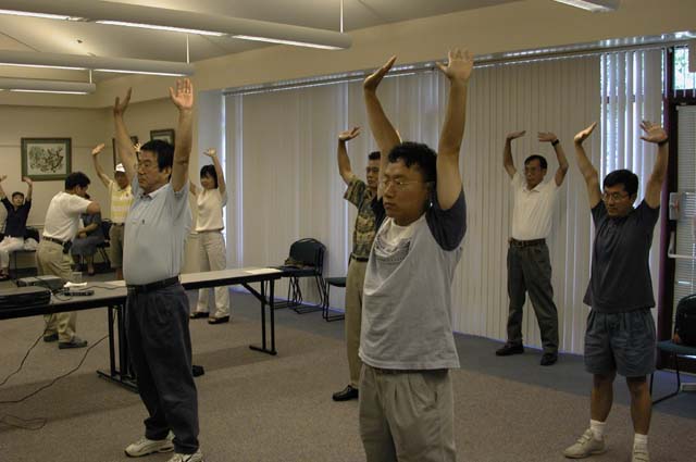 第三天晨炼在垦丁国小,来了六、七位当地新学员,除帮他们调整功法姿势外,也传达「三发正念」的作法与重要性,更在气氛的催化下,大家交流到八点整才依依不舍地分手。早上大夥儿到热门的「水世界」去弘法,起先遭到管理员的阻挠,不准我们在内展示功法,当下我们弟子有人开始发正念,有人善心地向管理员弘法讲清真相,不到五分钟,管理员首肯了,大家即在「水世界」川堂展示功法及发真相资料,好多人穿着泳衣,身上还淌着水站着聆听大法简介与真相资料,真是一个崭新的经验,正法弟子正创造着未来的历史。