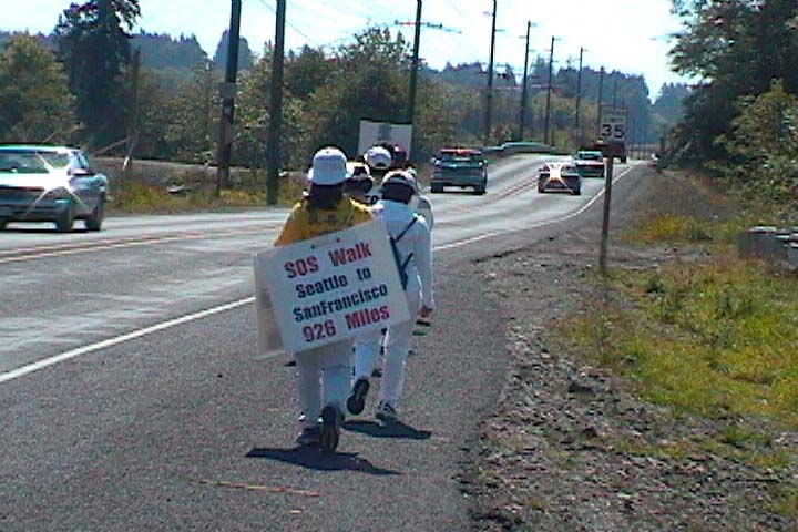 于是,一场全球SOS紧急营救中国大陆法轮功学员、制止虐杀的序幕,从6月份拉开。上百名法轮功学员带着醒目的标志,以步行、骑自行车、或车队的方式,从美国各地奔赴首都华盛顿。