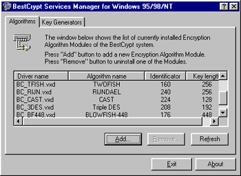 包括448位的blowfish 128位的idea、cast 192位的triple des ,256位的rijin),可以在硬盘上,或优盘上建立加密的文件空间,从而保证文件的安全。该软件自带文件擦除工具。可以擦除WINDOWS交换文件和彻底删除文件。