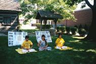 而在这盛夏假日里,无论你走到哪里都能看到我们的大法弟子。在旅游景点,在中国城,在热闹的交通路口,在一些公园的草地上,都能看到我们大法弟子的身影。弟子们以慈悲的胸怀和祥和的心态,唤醒着人们心中尚存的善念。
