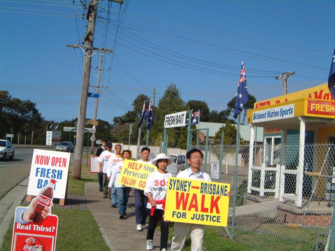 9月5日(星期三),步行第5天,今天走了32公里。大法弟子去售报店发传真,老板听说我们要走到布里斯本去,“SOS紧急救援”中国受迫害的法轮功修炼者之后,坚持不收取传真费用。