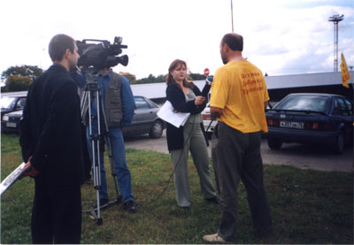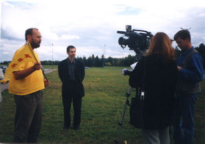 访问前夜我们才得知消息,所以没有更多的时间作准备。于是我们决定带上必须的资料,直接去圣彼得堡机场。我们的困难在于,在俄罗斯所有反映意见的举动都必须事先得到官方的正式批准。我们不能违犯当地的法律,同时我们也很清楚,应该利用这一机会,向媒体讲清真相,向邪恶势力发出正告:法轮大法在俄罗斯同样是坚不可摧的。所有参加这一行动的学员都感受到了心中正念的力量,我们坚信大法能正一切不正的,“法能破一切执著,法能破一切邪恶,法能破除一切谎言,法能坚定正念。” 此次正法行动的成功再次证实了这一点。