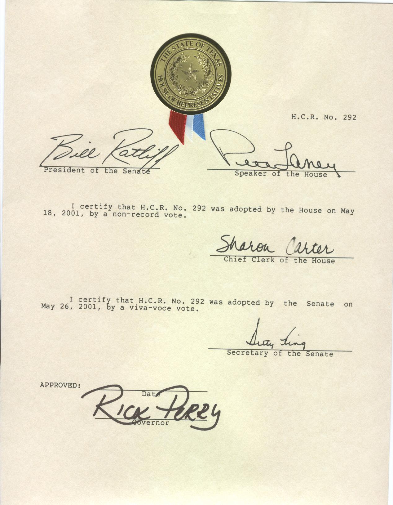 签字:参议院主席:比尔.拉特利 众议院院长:比特.兰尼