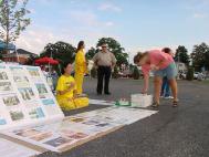 一个美国人特意过来向一个学员说:他一直在关注法轮功的消息。他明白我们不是搞政治,可我们被污蔑是,他知道炼法轮功的都是好人,他来这里就是想说一句他是支持我们的。