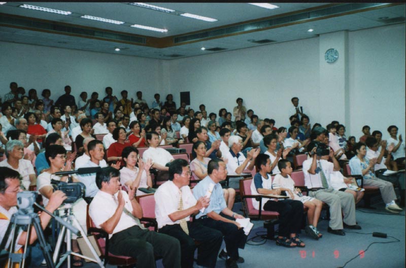 台南成功大学「法轮功研究社」于九月九日下午一点半至五点半举办了一场「法轮大法对我身心之转变」讲座,特别邀请台大张教授、前儿科主任聂医师两位与会,畅谈自己修炼心得。观众听讲非常踊跃,会场内外挤满人潮。