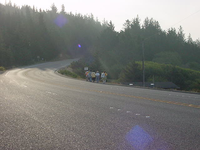 队员们在路边午间稍息