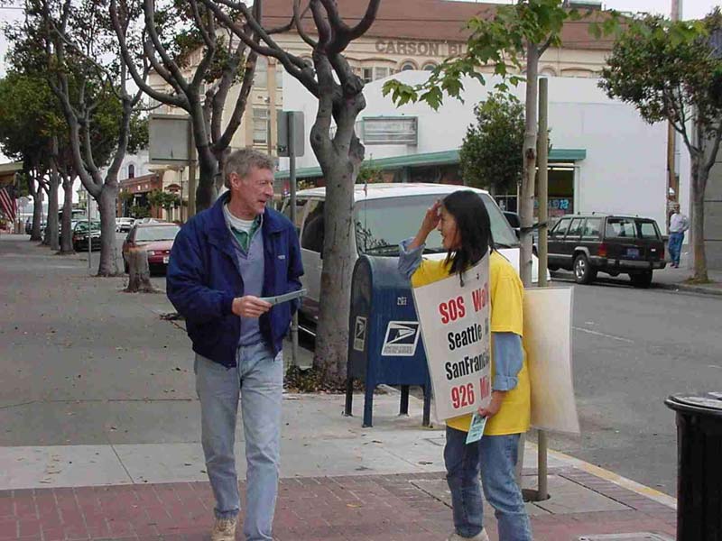 学员在向路人讲述“紧急救援”及真象