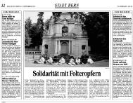 法轮功追随者从昨天起在伯尔尼的THUN广场开始了56小时绝食抗议活动。他们要求中国政府立即释放130位在马三家劳动教养所被关押的法轮功成员,他们正处在血腥残酷的环境下。有组织的迫害,精神上折磨,强奸在中国的监狱和劳动教养所天天都有发生。这次的绝食抗议活动在苏黎世,日内瓦还有其它国家的城市都有举行。据伯尔尼的法轮功练习者Simone Schlegel女士介绍,在中国的许多法轮功成员(因残酷镇压随时)有生命危险。