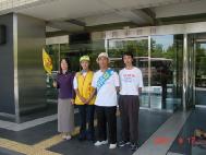 其他步行的学员于上午9点多到达福冈县新宫町市,前往市政府递交SOS救援信。市政府人员热情地接待了大家听取了介绍,接受了来信。看到大家都很热,于是给大家送来冰镇水,并关心地询问大家是否吃过饭,并说他们那里有食堂可供就餐。