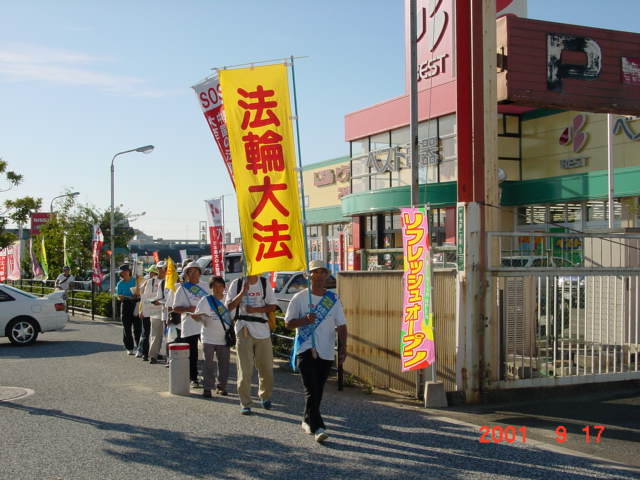 9月16日下午4点17分,来自日本东京、广岛、大阪、新泻和长野地区的十几名大法学员组成南线SOS长途接力步行小分队,在学员们的欢送下从福冈市起程。