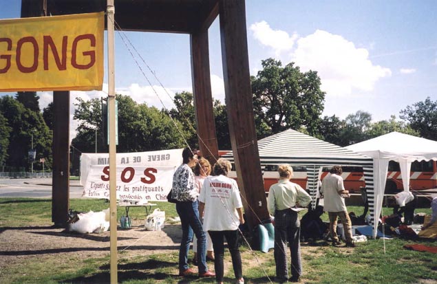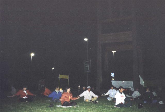 9月15日下午,在瑞士大法弟子绝食请愿的日内瓦万国宫广场,来了为数众多的青年人举行“反对战争与暴力”集会。这真是正法的好机会,弟子们不失时机地散发大法资料,演示功法,并与青年们交谈。集会开始后,多位与会者发言,强烈谴责暴力行为。青年人的和平愿望是可贵的,但对如何避免战争与暴力行为,发言者却未作出令人信服的回答。这时,一位参加请愿的瑞士法轮功弟子主动走上前去要求发言,她说,对邪恶的恐怖分子的暴力行为造成的“9.11”悲剧,我们和你们一样感到震惊和悲愤,而在地球另一端的中国每天都发生着邪恶对法轮功学员的暴力行为。惨痛的血的教训告诉我们,清除邪恶与暴力是没有国界的,是迫在眉睫的。我们今天在这里绝食请愿正是要求中国(江泽民)政府停止暴力虐杀法轮功学员。法轮功的核心是“真善忍”,我们相信如果每个人的心中多一点“真善忍”,世界就会多一份和平的力量,邪恶与暴力就会失去滋生地,所以改变人心是当务之急,我们的世界需要更多的“真善忍”。她的发言赢得了热烈的掌声,得到了与会者的认同。