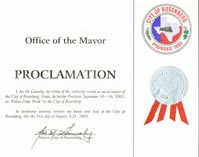 做为见证,我现在举起我的手,将洛森市的印章于2001年8月31日加盖在本证书上。