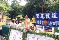 记者会由法轮功研究学会理事长张清溪教授主持,会中除了各大媒体记者到场采访摄影外,高雄市侯副市长、高雄县社会局长程泰运、屏东县民政局副局长许德金、前警政署长暨海巡署长姚高桥、杨秋兴立委、曾长发议员特助张光雄等在莅会致词时,都一致夸赞法轮功(法轮大法)是正法,是好法,法轮功的学员都是好人中的好人,中国如此泯灭人性的迫害凌虐,不但严重违反人权,而且应该受到世人谴责。