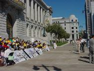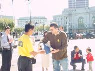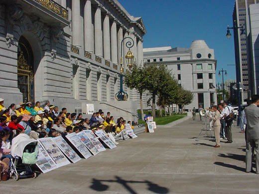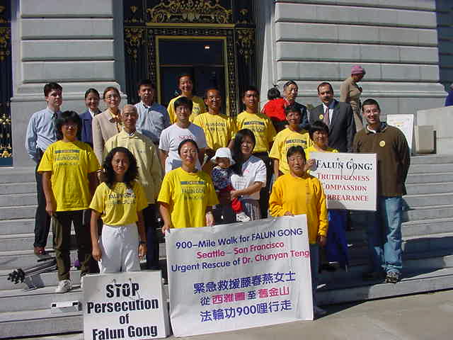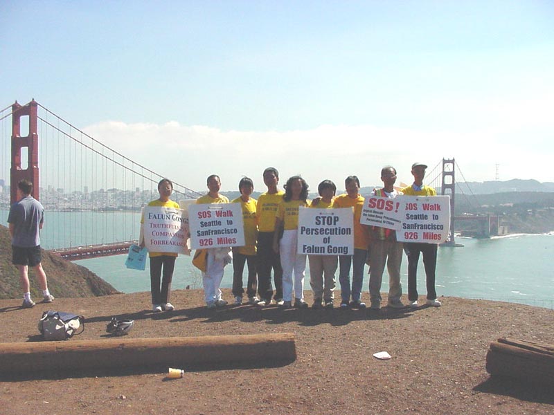 新闻发布会后,从西雅图步行900多英里的学员在旧金山市数名警察和美国国务院旧金山当地代表的目击下向中国驻旧金山总领事馆递交请愿信,被领馆工作人员无理拒绝。警察在了解了大法的基本情况后对学员们坚持以非暴力争取信仰自由的精神表示崇敬。一位美国人士看到中国领事馆拒绝为海外法轮功学员中的中国公民服务时说:“如果谁到美国大使馆,我们的官员时刻准备为来访者服务。可惜你们碰上这样一个政府。”