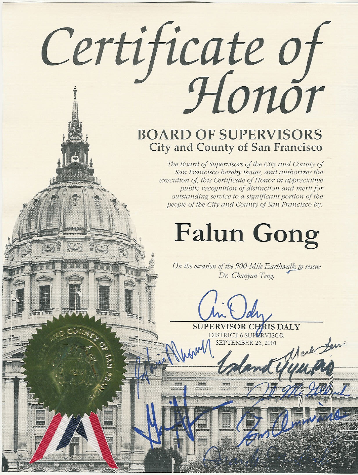 国会议员D’Amico说:最近恐怖分子袭击美国的事件是一个悲剧,但是两年来对法轮功的镇压是全人类的悲剧。我们将继续努力使更多的人们认识到这一点。