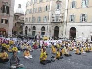 晚上,弟子们在著名的西班牙广场的台阶上,举行了烛光守夜,悼念在中国被迫害致死的283位中国学员,用这样的形式唤醒世人的良知。庄严的普度济世音乐再次奏响在罗马的夜空中。