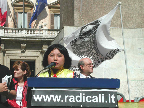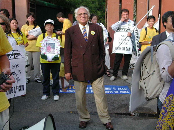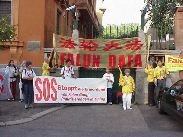 | 中国大使馆前 | 欧洲议会议员Marco Panella先生和学员在大使馆前 | 宣读给中国大使的公开信 |