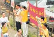 另据世界日报香港消息,十多名法轮功学员在展览场馆对面街拉起横额及派传单抗议举办污蔑法轮功的展览。