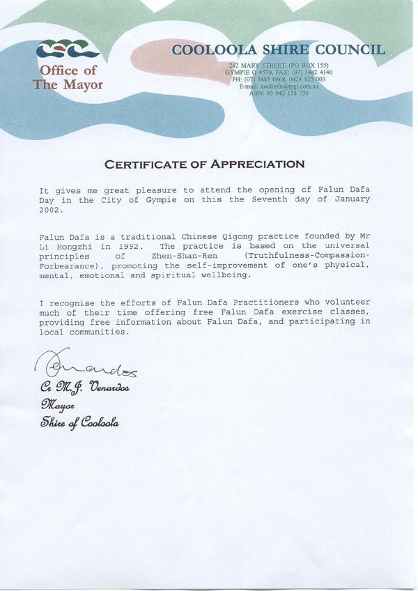 我很荣幸地参加了2002年1月7日甘佩市“法轮大法日”的开幕式。