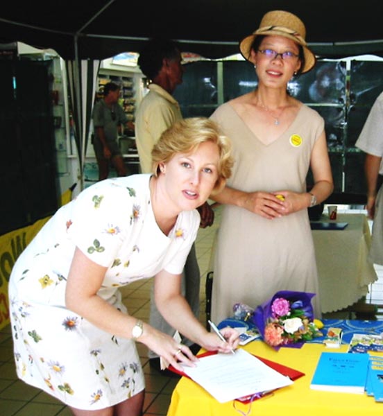 州下院议员爱丽萨.罗伯慈(Elisa Roberts)上午10:30后不久到来,表达了她对“法轮大法日”的良好祝愿,并签署了甘佩市“法轮大法日”的官方褒奖状。她非常支持法轮大法,并希望我们更加努力地让澳大利亚人民知道法轮大法的好处。