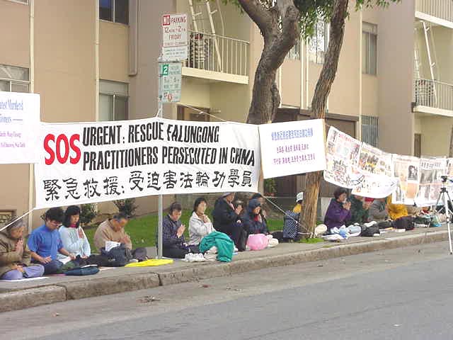 抗议活动的横幅上用中英文写着近期被迫害致死的学员的名字。学员并向公众公布恶人的名单和电话号码,吁请公众给这些恶人打电话质问他们的罪行。来自世界范围更加广泛的对于邪恶的谴责与揭露,已经给予镇压者以极大的震慑作用。日前,一名被关押的年轻法轮功女学员在海外人士的强有力的声援中获释。对迫害法轮功学员负有直接责任的湖北省公安厅赵志飞日前被美国法院判决犯有谋杀罪、酷刑迫害罪、反人道罪等一事,也向助纣为虐者发出了强有力的警告。