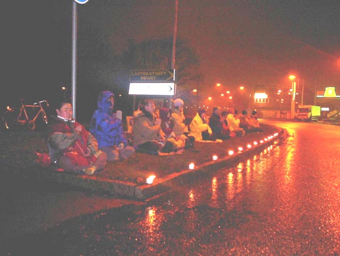 尽管时间紧并且来不及得到警方的许可,但大法弟子们积极想办法,加强自己的正念,我们终于在与警方多次联系后,破例地得到了在中领馆前举行烛光悼念活动的口头许可。