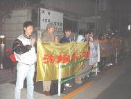 日本东京周边的法轮大法弟子,1月12日晚,走出家门,汇集到东京的中国大使馆门前,开始了为期三天的全球烛光守夜活动。