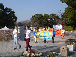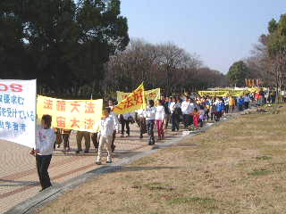 与会全体学员多次发正念,边学法边交流了当前在学法、发正念、讲清真相这三件大事上,如何做得更深入、更扎实、更自觉。13日天气晴朗、风和日丽,寒冷的冬天竟是3月中旬的气温。大家一早就赶到了名古屋市最大的公园--名城公园,集体三发正念,炼功。下午一点准时开始了洪法游行。队伍肃穆、整齐,沿途散发着讲清真相的资料,给名古屋广大市民留下了深刻、崭新的印象。
