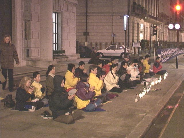 中国驻英使馆离购物闹市区牛津街很近,徒步只需几分钟就到了。因为是周末又是在新年减价销售期间,许多人开车从伦敦外围或外地到牛津街购物。当人们路过使馆前时都看到了平静、祥和的大法弟子们在炼功或发正念。