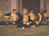 有三个从中国来的人向一个弟子问路,她耐心地向他们指了路并给了他们大法资料。她告诉他们,“法轮大法修的是真善忍,你们看到的这些人炼的就是法轮功”。这三个人态度都友好,带着渴求的目光,听得很认真。这位弟子还告诉他们,“你们应该好好看一看这些资料,这对你们是有好处的。回国后你们也能告诉其他人法轮功真相与在国外的情况。”还有几辆车载着从中国来的游客,他们都很高兴地接受了大法的资料。