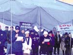 1月14日晚通宵到15日上午,日本法轮大法弟子在东京中国大使馆前,继续为期三天的全球烛光守夜活动,悼念被迫害致死的同修,