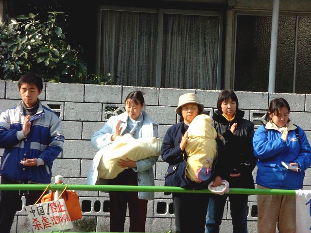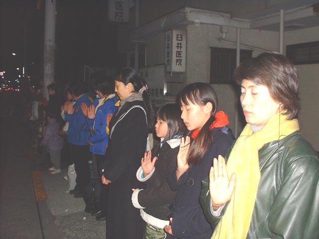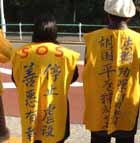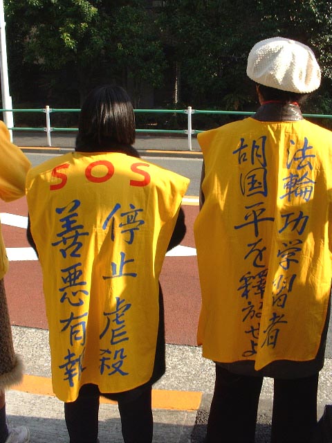 上午10时,弟子们站到大使馆紧闭的铁门前,用日语和中文庄严宣读致大使馆书,呼吁立即停止屠杀。