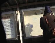 | 法院出口远景(押送学员的车由此门进出) | “我支持法轮功!”(一位看过公告栏上学员传单的老人大声说) | 一学员追着警车大声喊“法轮大法好” |